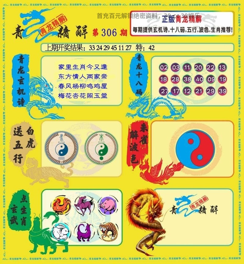 306期:家里生肖今又逢,东方情人两家亲,春风杨柳鸣鸡屋,梅花杏花照玉堂